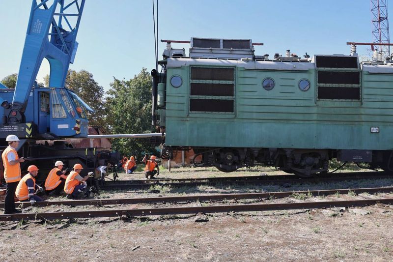 Відпрацьовувалась оперативна ліквідація наслідків сходження електровозу ВЛ-82м, в якому зійшла з рейок одна секція всіма колісними парами. Одночасне піднімання рухомого складу здійснювалось кранами ЕДК-300 та ЕДК-500, із застосуванням пристосувань – зачепів для підвішування візків електровозів, які встановлюються на місце гідравлічних гасників коливань.